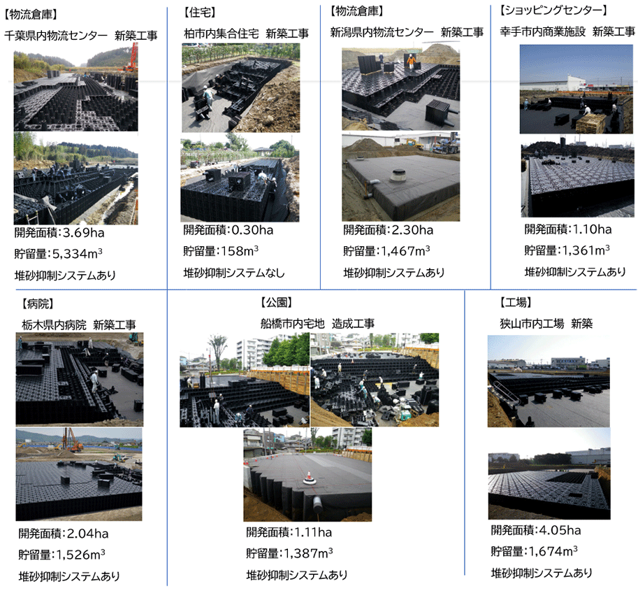 ハイドロスタッフは、ショッピングセンター、宅地造成、公園、病院、物流倉庫、学校グラウンドなど
